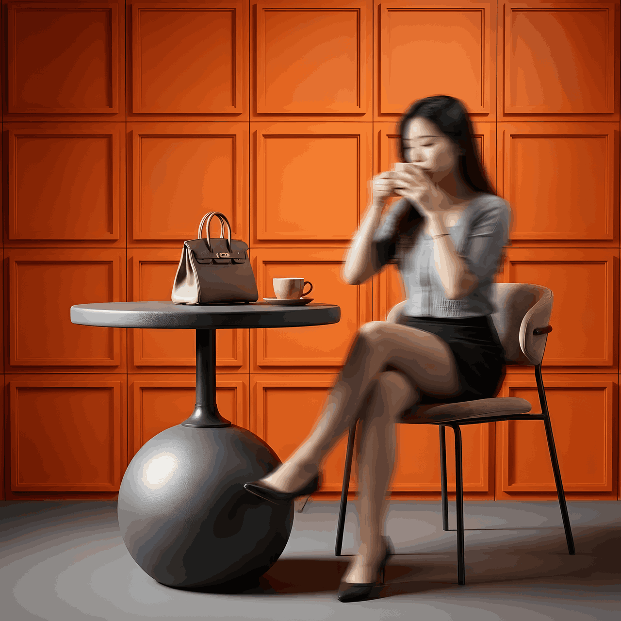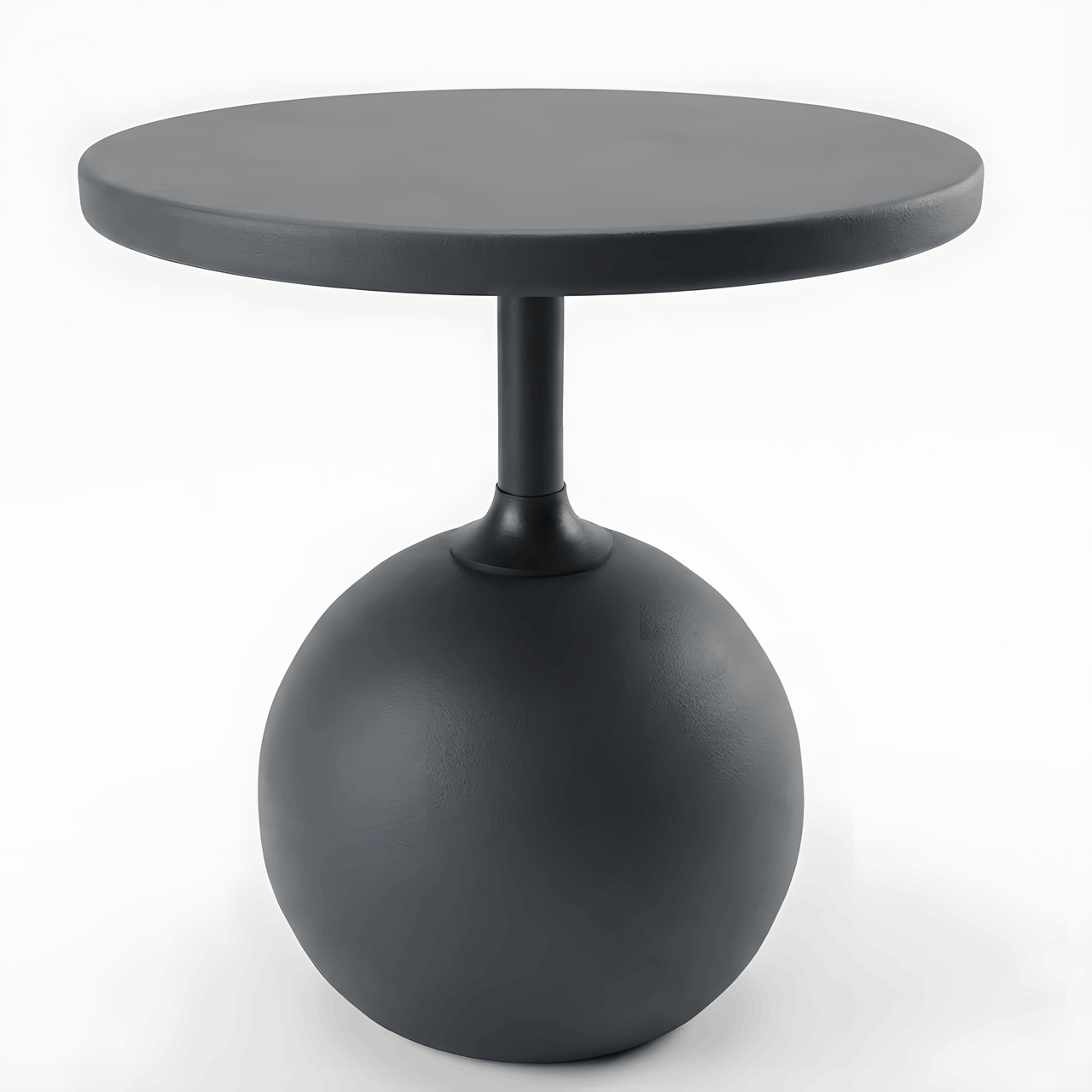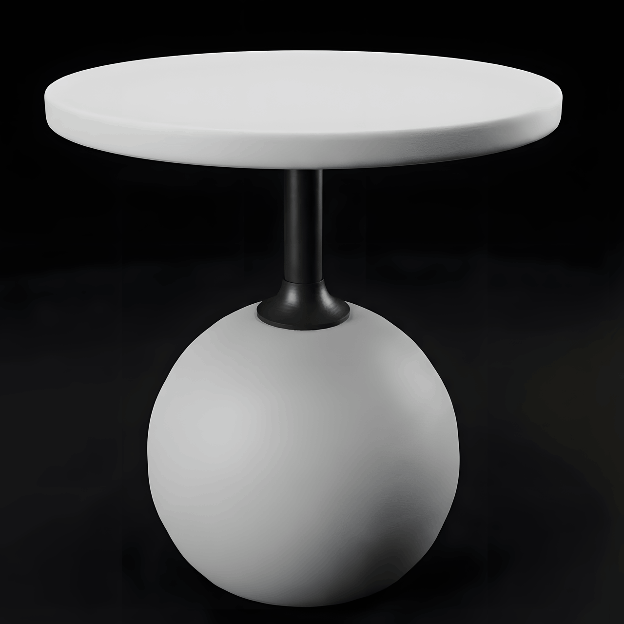 Cấu trúc điêu khắc: Điểm nhấn đắt giá nhất nằm ở phần chân đế khối cầu (Sphere) tròn đầy, tượng trưng cho sự viên mãn và vững chãi. Tương phản với đó là trục thân mảnh mai nâng đỡ mặt bàn tròn mỏng nhẹ bên trên, tạo nên một “vũ điệu” cân bằng thị giác hoàn hảo – vừa nặng, vừa nhẹ; vừa tĩnh, vừa động.